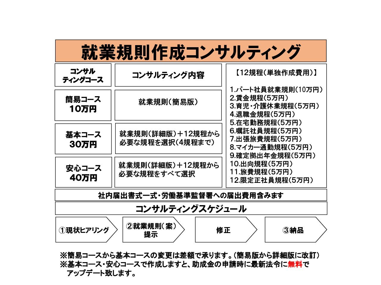 就業規則作成コンサルティング 10万円~40万円(下記の表参照)